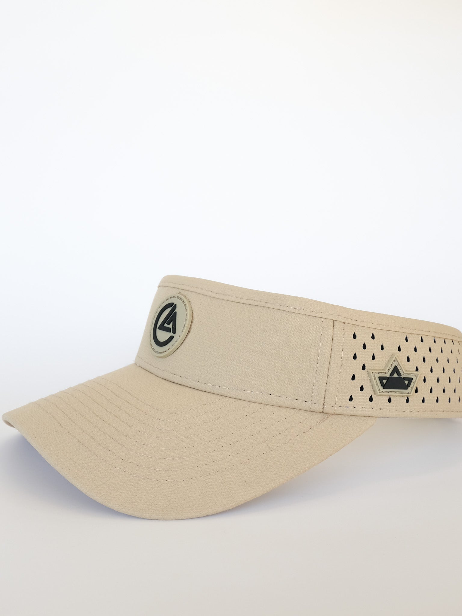 The Maverick is our curved visor with sleek moisture wicking sport fabric, teardrop mesh on the side and a stretchy elastic back clasp. Built with quality materials, our visor performs in the water, sand, or wherever your day takes you!